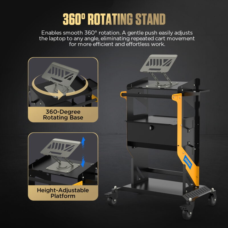 - Multi-Layer Storage Design: Specialized laptop storage tier 360° rotating base and lifting platform design, more convenient to operate the computer in diagnostic programming. Multi-layer storage design with large storage space meets your daily storage needs and helps you to categorize them clearly according to your habits, which looks more beautiful and neat.