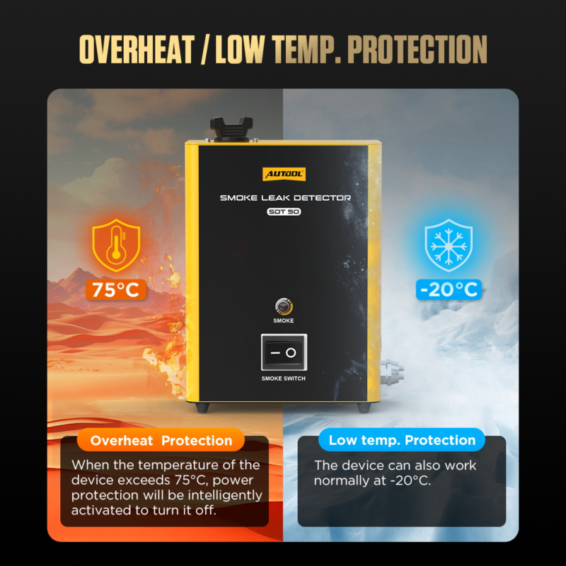 - Wide Range of Applications: The AUTOOL SDT50 smoke machine leak detector is suitable for detecting leaks in automobiles, motorcycles, snowmobiles, ATVs, light trucks, and speed boats, suitable for all models(only for 12v DC).