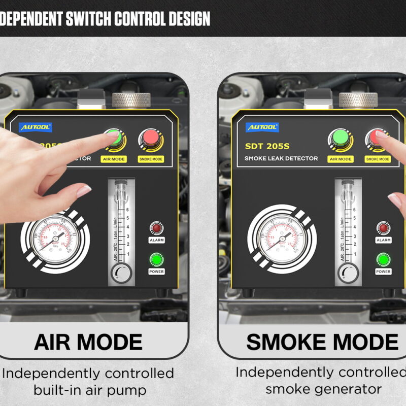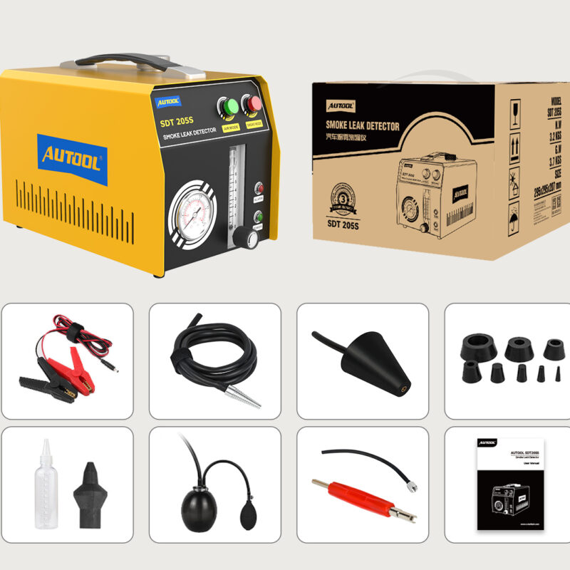 AUTOOL SDT205S Automotive Smoke Tester is an automotive smoke leak detector with dual test modes, air mode, and smoke mode.