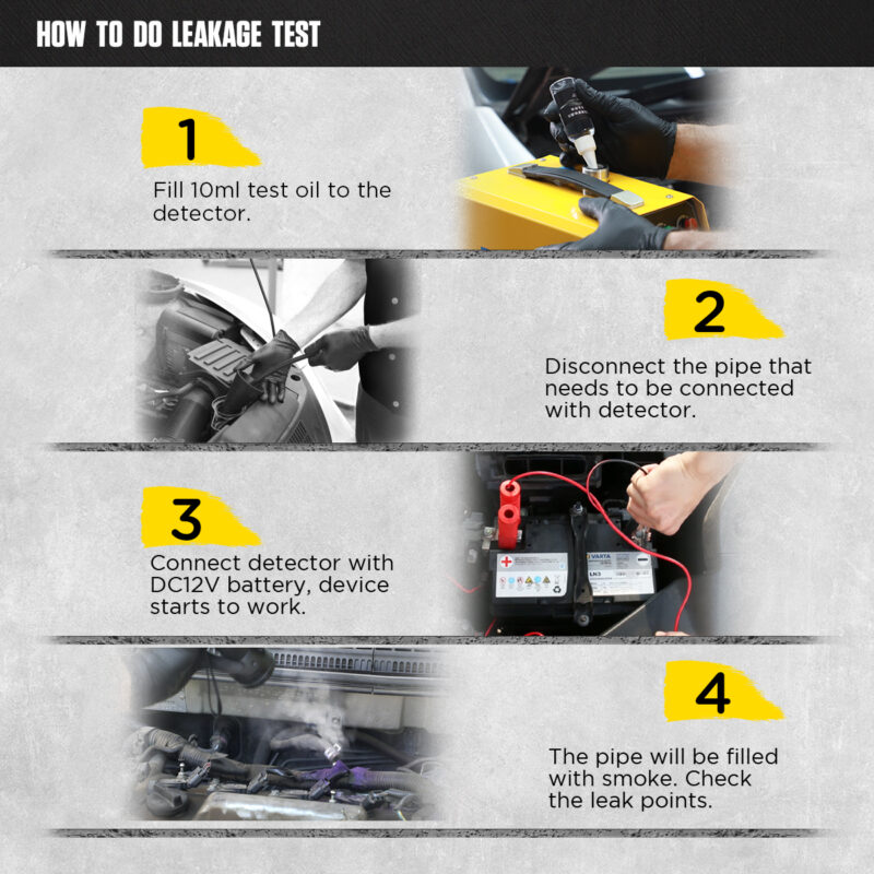 - Step 4: In about 30 seconds, the pipe will be filled with smoke. Check the leak points. Please use a headlamp if necessary.