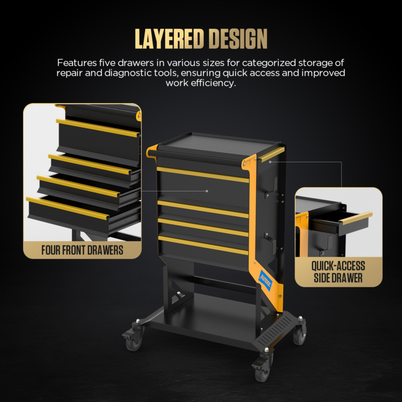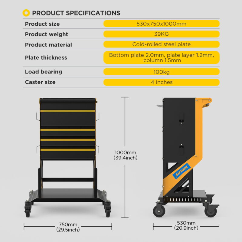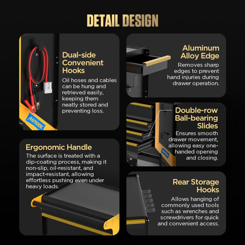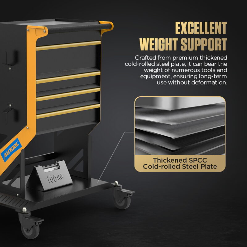 - Selection Of High-Quality Steel: AUTOOL T27 work storage cart features several drawers. Its high-quality stainless steel construction ensures excellent wear and tear resistance, making it extremely robust and durable.